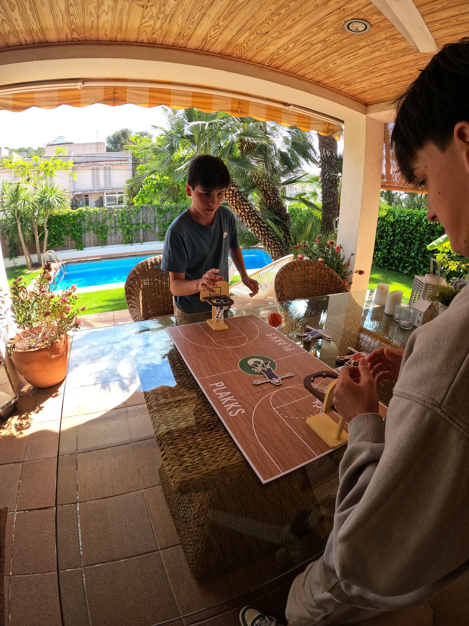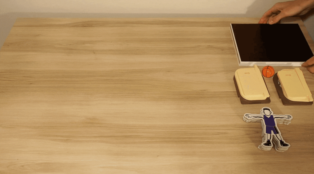 Prepara la cancha y coloca el aro y a tus jugadores. ¡Que comience el juego!